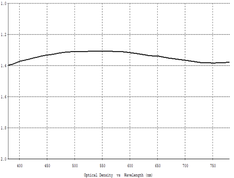 Les filtres en verre de couleur neutre sont nommés en fonction des caractéristiques de transmissivité moyennes dans une longueur d'onde de 400 nm à 700 nm avec une épaisseur de 2 mm.